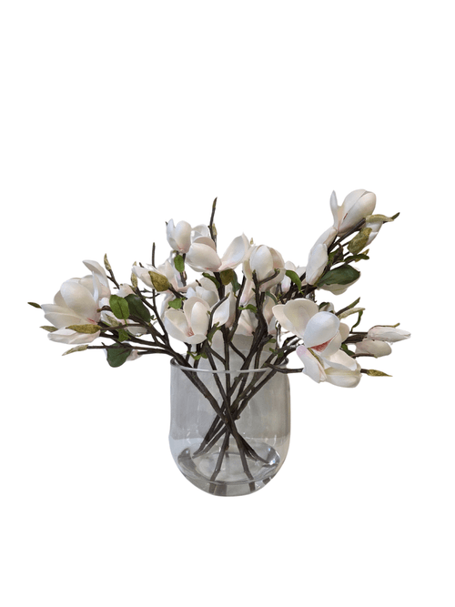 JAPANESE MAGNOLIA STEMS IN AQUALOOK AND GLASS VASE