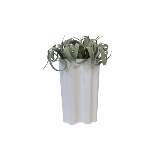 TALL/NARROW WHITE RIBBED CERAMIC VASE WITH AIRPLANTS